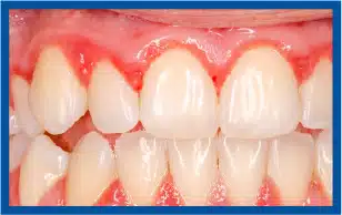 Ontsteking is de meest oppervlakkige en voorkomende vorm, vaak veroorzaakt door agressief voedsel, slechte mondhygiëne of onjuiste mechanische mondhygiënetechnieken. Door de ophoping van tandplak en tandsteen, en daarmee de toegenomen bacteriegroei in de loop van de tijd, kan de ontsteking verergeren tot gingivitis , een langdurige ontsteking van het zachte weefsel rond de tanden. Als deze aandoening niet wordt behandeld, versnelt de vorming van bacteriële tandplak, zelfs onder de tandvleesrand, waar het tandvlees de tand raakt. Dit leidt tot de ernstigste vorm van tandvleesontsteking, parodontitis, die niet alleen het tandvlees aantast, maar ook het weefsel dat de tanden ondersteunt: het alveolaire bot en het parodontale ligament.