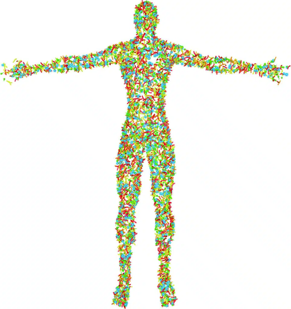 De microbiota bestaat uit zes keer zoveel bacteriën als het menselijk lichaam en uit minstens vier miljoen verschillende soorten bacteriën.