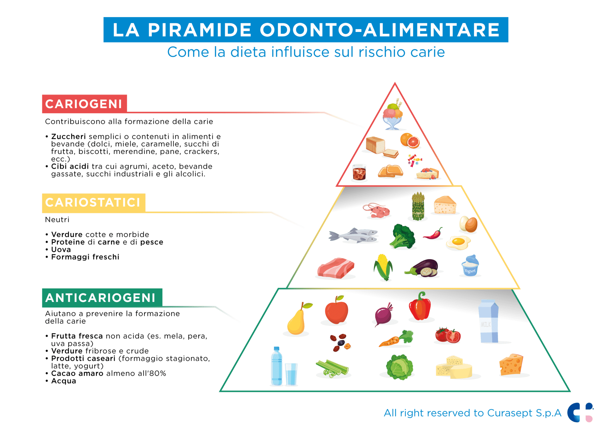 In het eerste geval hebben we het over cariostatische voedingsmiddelen , zoals bepaalde groenten , vlees- en visproteïnen , eieren en verse kazen , die een neutrale pH-waarde hebben. In het tweede geval hebben we echter ook over anticariogene voedingsmiddelen ; deze voedingsmiddelen zijn van onschatbare waarde voor de mondgezondheid en passen bovendien in een evenwichtig voedingspatroon.